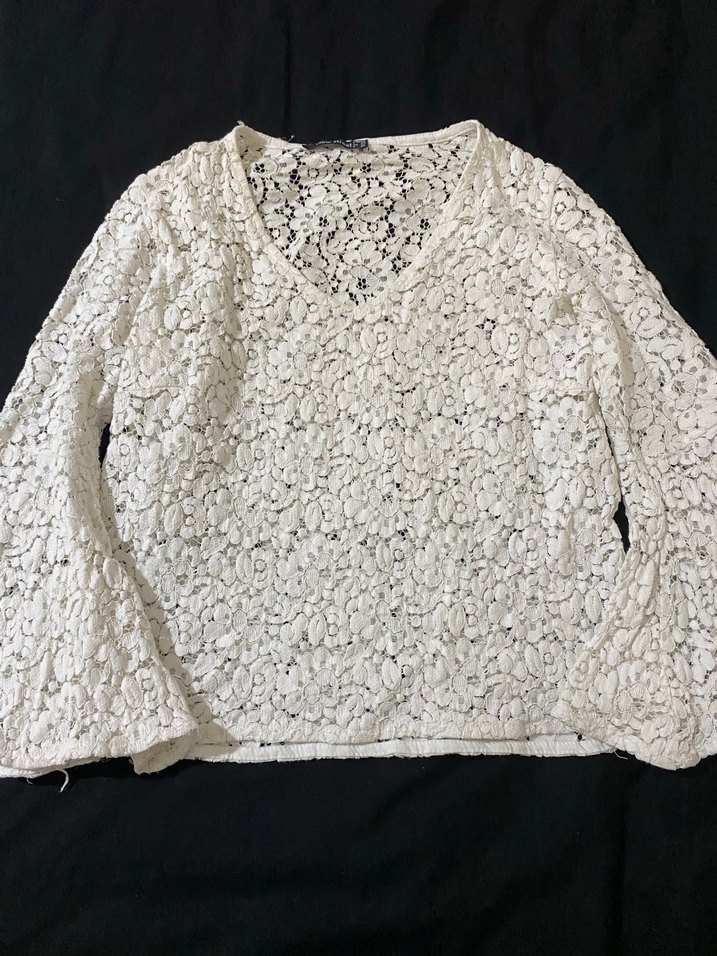Beyaz renkli, dantel detaylı, uzun kollu ve V yaka bohem tarzda örme kadın bluz. Rahat kesimi ve normal boyu günlük kullanıma uygundur. iç gösteriyor bu yüzden içine bir body ile giyilmeli. kollardan bollaşıyor. hiçbir kusuru yok. markayı üste çıkması için seçtim.