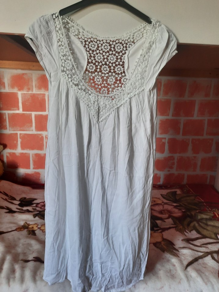 %100 pamuk brümcük kumaş, yaka ve sırtında dantel detayları var iç göstermez astarlı, ölçüleri görselde mevcut 1kez kullanıldı yepyeni tertemiz