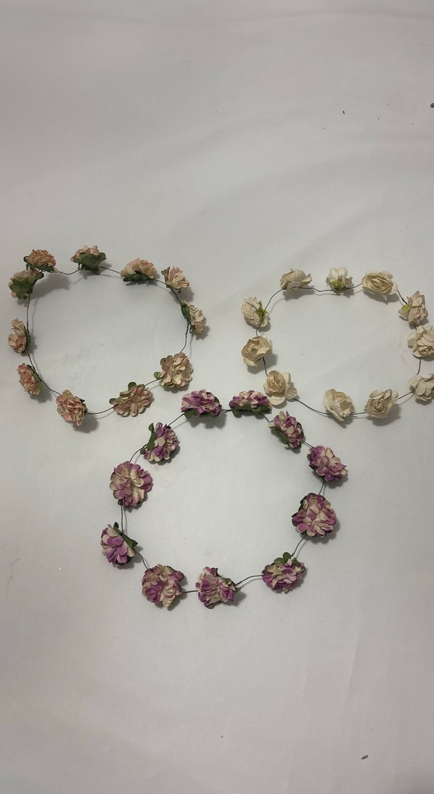 Bu bohem tarz saç aksesuarları, çok renkli hafif renkli dantel ve pamuk çiçeklerden oluşur, vintage bir görünüm sağlar. Bez kumaş tan yapılmış çember 3 adet tane 100 TL
