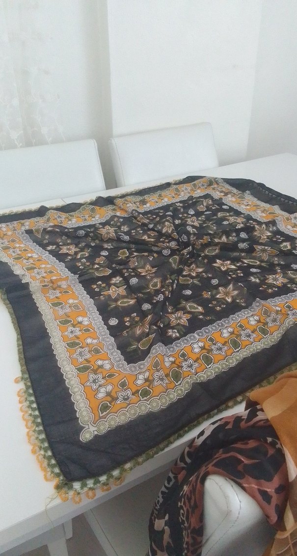Kadınlar için çok renkli, koyu tonlarda, çiçek desenli ve dantel detaylı bohem tarzı fular.