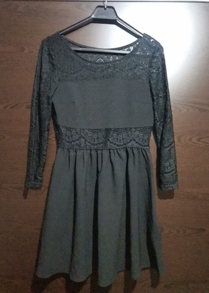 Bel, kol ve sırt kısmı dantelli şık elbise. 38 beden.