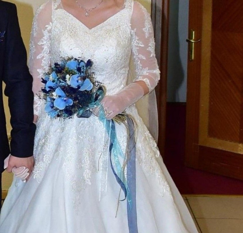 Dantel Detaylı Fakir Kol Beyaz A Kesim Gelinlik