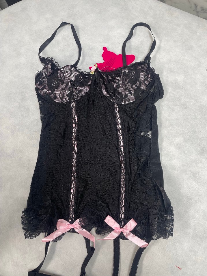Gotik tarzda, dantel detaylı, ince askılı, halter yaka ve pembe fiyonklarla süslenmiş, vücuda oturan midi uzunlukta büstiyer. Sentetik kumaştan üretilmiştir. S/M beden uyumludur. 3 parça gönderilir. Ürünün duruşu görsellerin sonundadır Hijyen kuralları gereği iade yoktur.✨