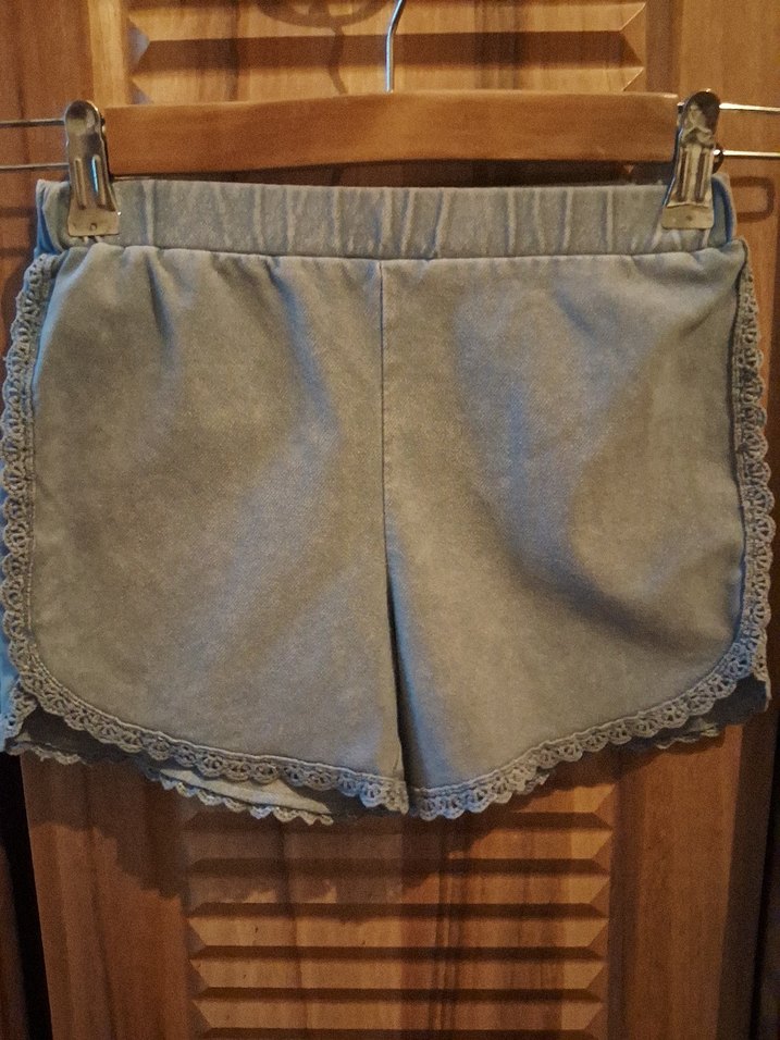 Gri renkli, bol kesim kız denim şort, dantel detaylı. Bohem tarzı yansıtan rahat ve desensiz model. yeni hiç giyilmedi