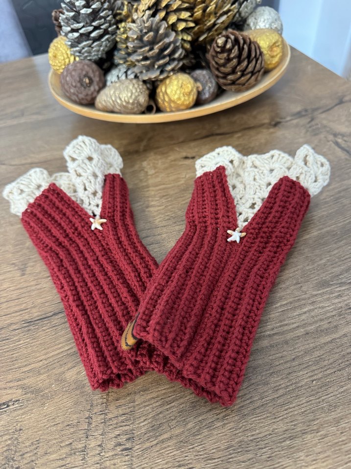 Kadınlar için bordo renkli, dantel detaylı örgü eldivenler. Sıcak tutar, bohem tarzıyla nostaljik bir hava katar. Standart bedendir Tüylenme yapmaz 30 derece soğuk makine yıkamasına uygundur