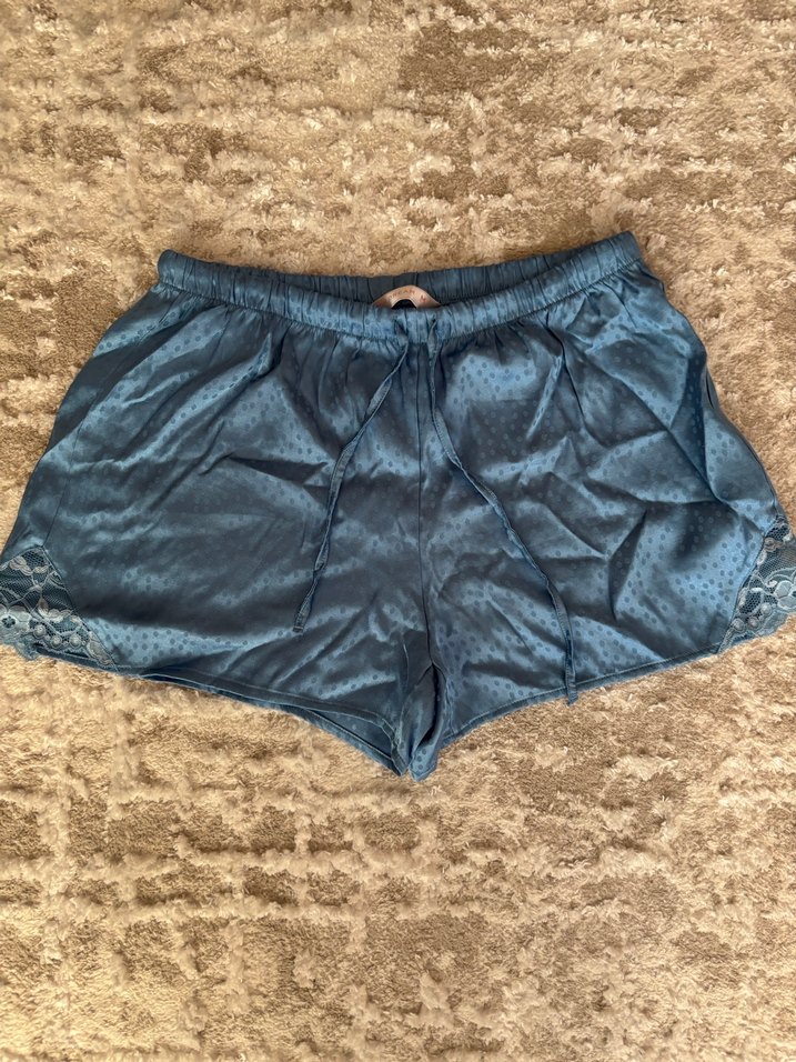 Mavi renkli, dantel detaylı şort. Rahat kesimiyle günlük kullanım için idealdir. (Zaten fantezi tarzı bir şorttu M bedendır sıfır üründür)