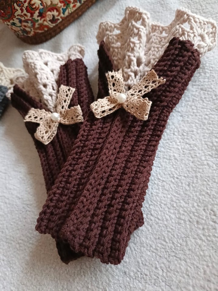 Dantel Detaylı Kahverengi Örgü Eldiven