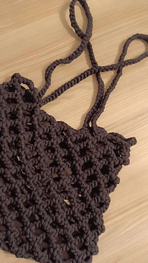 Kahverengi örgü kadın çanta, dantel detaylı ve bohem tarzda, günlük kullanıma uygun rahat ve retro bir görünüm sunar.