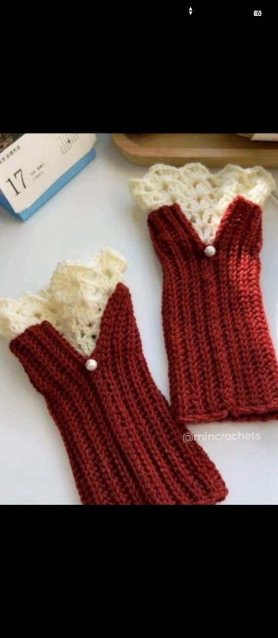 Koyu kahverengi örgü eldivenler, bohem dantel detayı ve küçük fiyonk ile rahat ve nostaljik bir görünüm sunar.