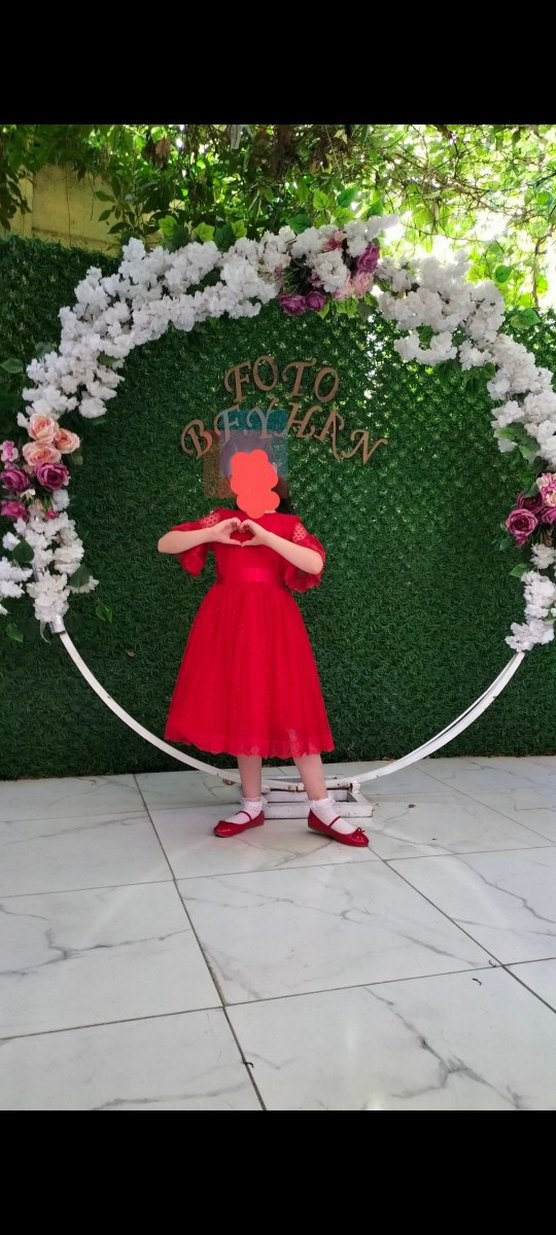 Dantel detaylı, yüksek yakalı ve askılı kırmızı çocuk abiye elbise, yumuşak sentetik kumaştan üretilmiştir. Özel günler için uygundur. 31 numara ayakkabı yanında hediye lcvakiki marka