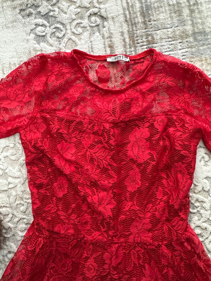 Dantel Detaylı Kırmızı elbise