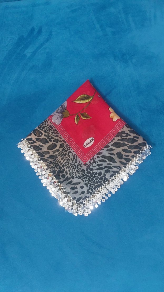 Bu kadın fuları, dantel detaylı ve renkli kırmızı tekstil tasarımıyla çiçek ve hayvan desenlerini barındırır, bohem tarzına uygundur. bahar marka pullu yazma çeyizdendir hiç kullanılmadı #bahar #pullu #yazma #çeyiz #tülbent #eşarp #tesettür