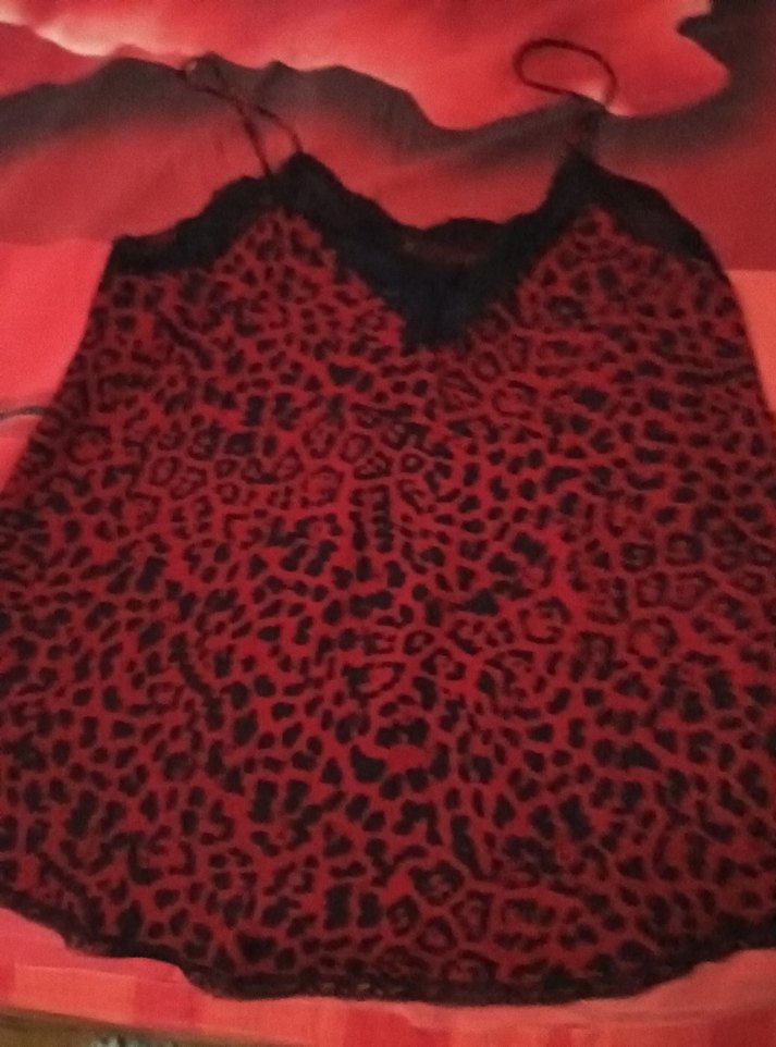 Dantel detaylı V yaka, kırmızı leopar desenli, normal midi boyda, dar kesim kadın atlet. kullanıma uygun, cesur gotik tarzda.yenidir ince kombinezon