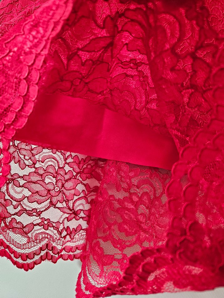 ‼️özel dikimdir ‼️hiç giyilmedi‼️Kırmızı dantel ve işleme detaylı, yumuşak sentetik kumaştan yapılmış, vücuda oturan midi eteği. Bohem tarzıyla romantik akşamlar için uygundur.