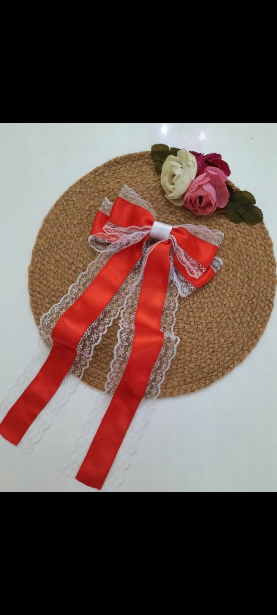 Kadınlar için kırmızı saten fiyonk, dantel detaylıdır ve vintage ile bohem tarzları bir araya getirir. Otomatik tokadır renk seçenekleri mevcuttur