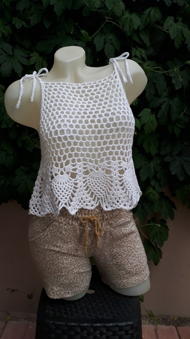 Salaş kesimiyle bohem tarzına uygun, kolsuz ve normal boyda olan bu büstiyer, örme ve ince dantel detaylarıyla göz kamaştırıyor. Outdoor veya içine giyilecek ışıltılı bir detayla gece tarzına da uygundur. Manken S beden uyumludur. Yarnart Baby Cotton iple örülmüştür. Çekim, ışık ve açı dolayısıyla renk yanılgıları olabilir. Buharda ütü uygulanmıştır. İstenilen renklerde ve ebatta örülür. Sipariş alınır. İnternette görüp beğendiğiniz bir model varsa iletişime geçip onu da ördürebilirsiniz. İADE VE DEĞİŞİM KABUL ETMİYORUM. #coton #cotton #koton #baby #crop #büstiyer #bistüer #bluz #askılı #örgü #orgu #hand #made #el #yapım #motif #pamuk #merserize