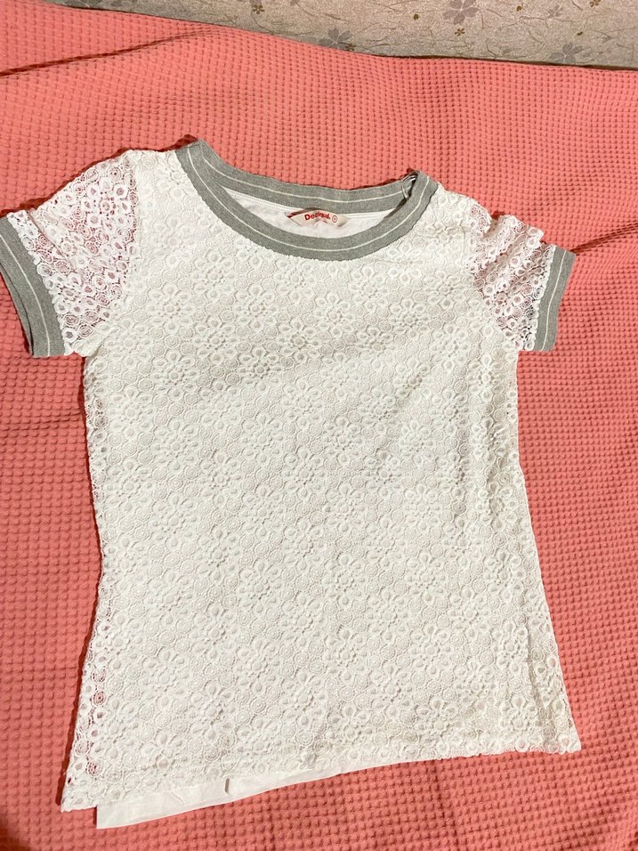 Kısa kollu, dantel detaylı beyaz kız tişörtü. Yuvarlak yaka ve pamuklu yumuşak kumaşa sahiptir. Rahat ve şık bir tercih.