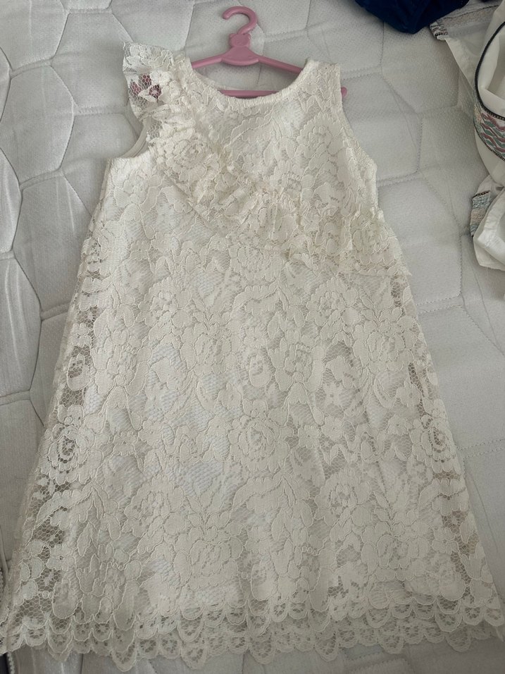 Dantel Detaylı Kız Çocuk Beyaz Elbise kız çocuk güpür elbise