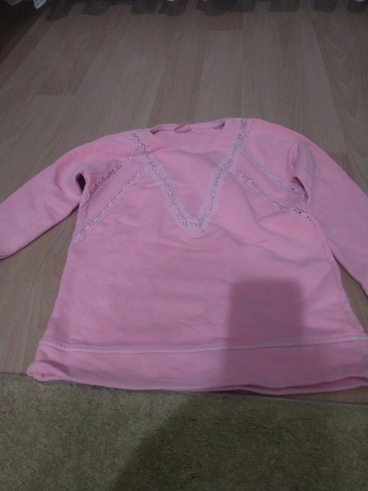 Uzun kollu, V yaka, dantel detaylı ve bol kesim pembe kız çocuk sweatshirtü. Yumuşak ve sıcak kumaştan üretilmiştir.