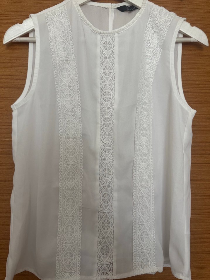 Dantel Detaylı Kolsuz Beyaz Bluz