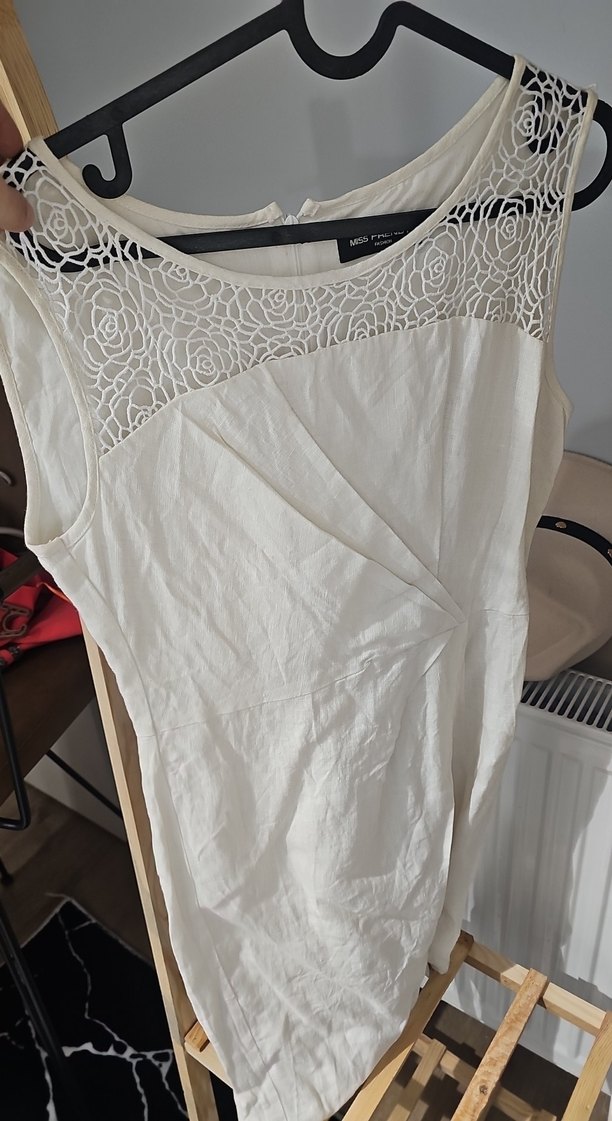 Dantel Detaylı Kolsuz Beyaz Keten Elbise
