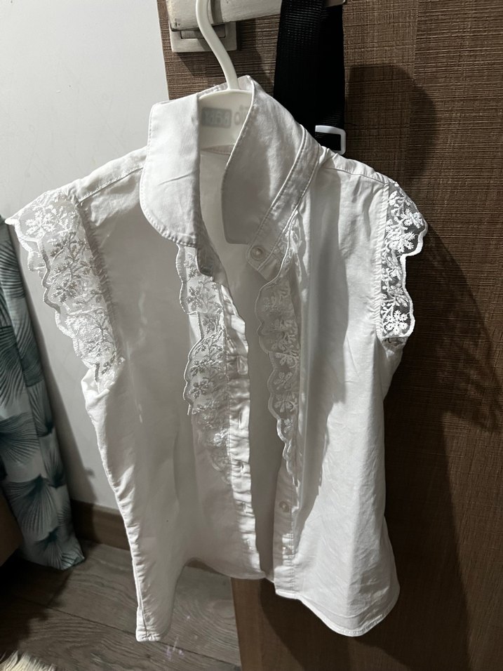 Kolsuz, yakalı beyaz keten gömlek, dantel işlemeli. Regular fit ve bohem tarzda, günlük kullanıma uygun.