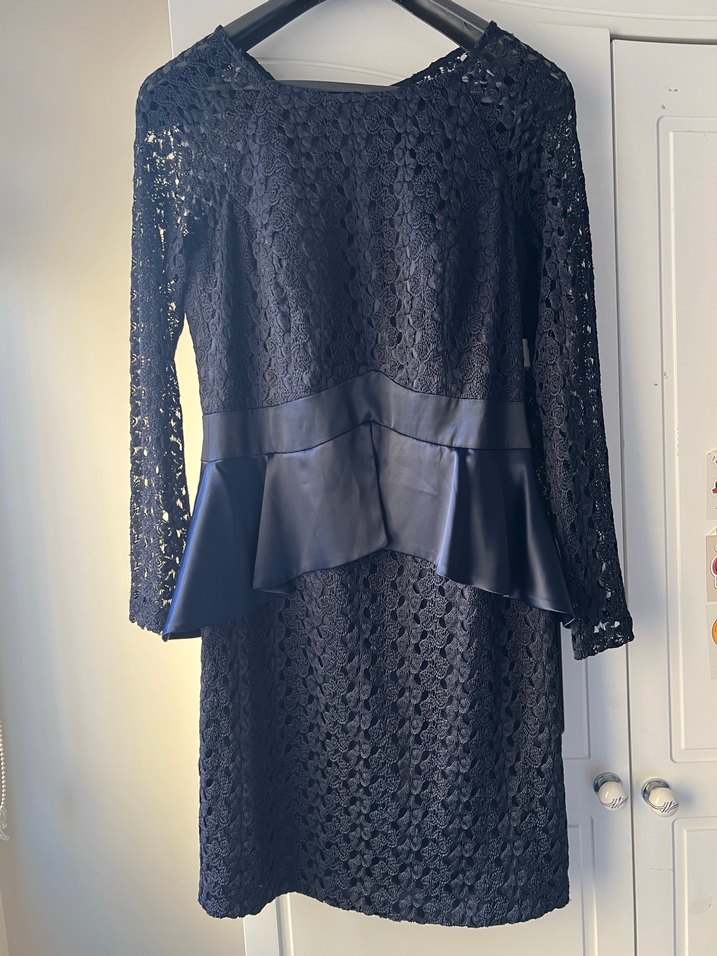 Dantel Detaylı lacivert Midi Kadın Elbise