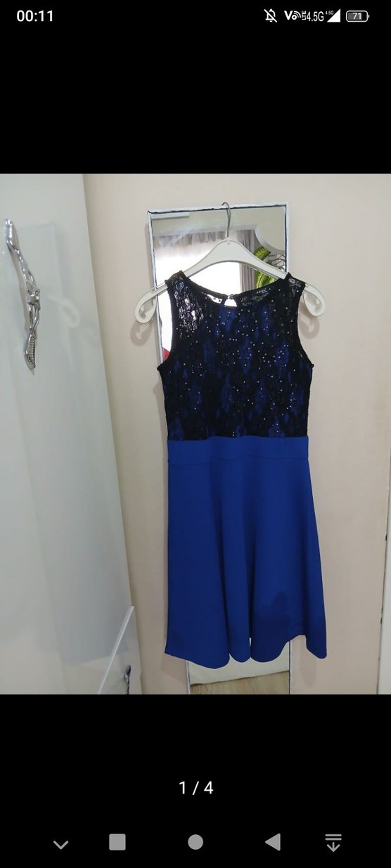 Dantel detaylı üst kısmı ve lacivert eteği olan, straplez, kolsuz, mini uzunlukta şık gece elbisesi. Parti için uygun, gotik ve göz alıcı tarzda. ✨