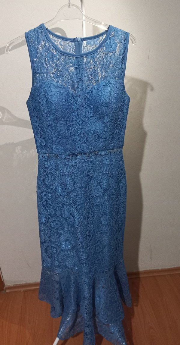 Dantel detaylı, kolsuz lacivert abiye elbise. Straplez yaka ve uzun abiye. boy bileğin biraz üstünde