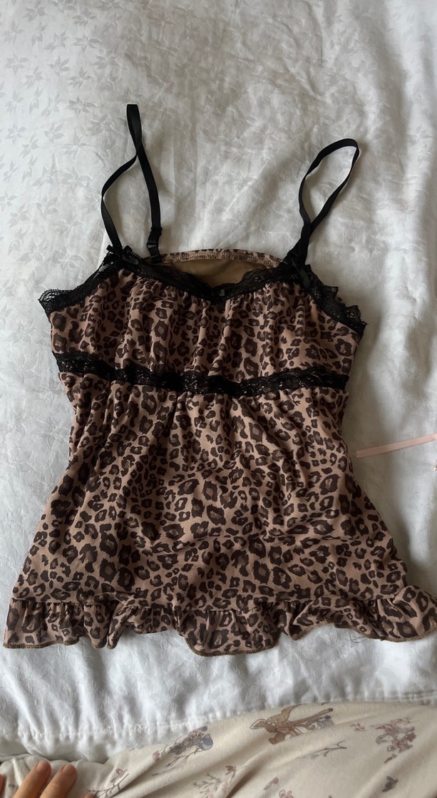 Dantel Detaylı Leopar Desenli İnce Askılı lolita Üst
