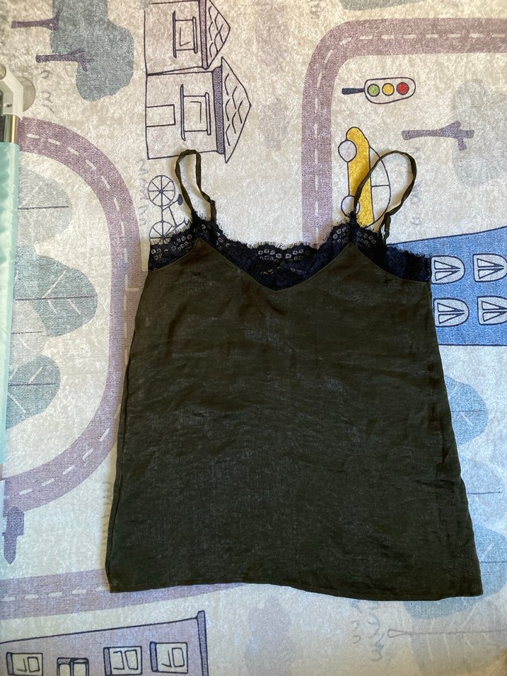Dantel detaylı, askısız yaka ve kolsuz, mat saten kumaştan, bol kesim bluz. Sokak stili için uygun.