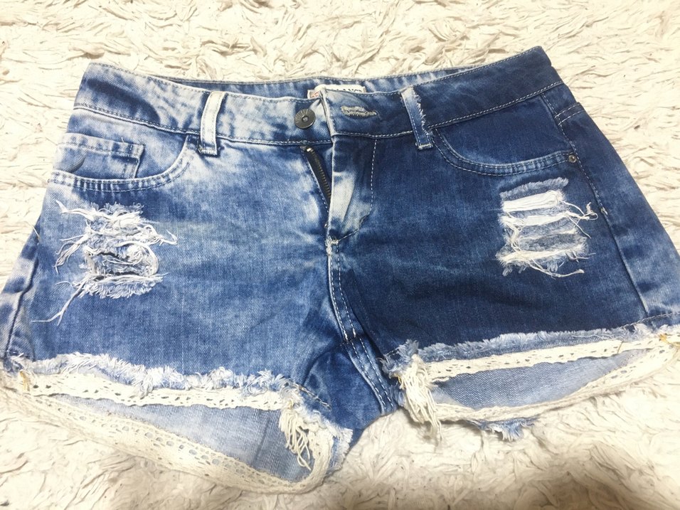 Dantel Detaylı Mavi Bohem Mini Denim Şort