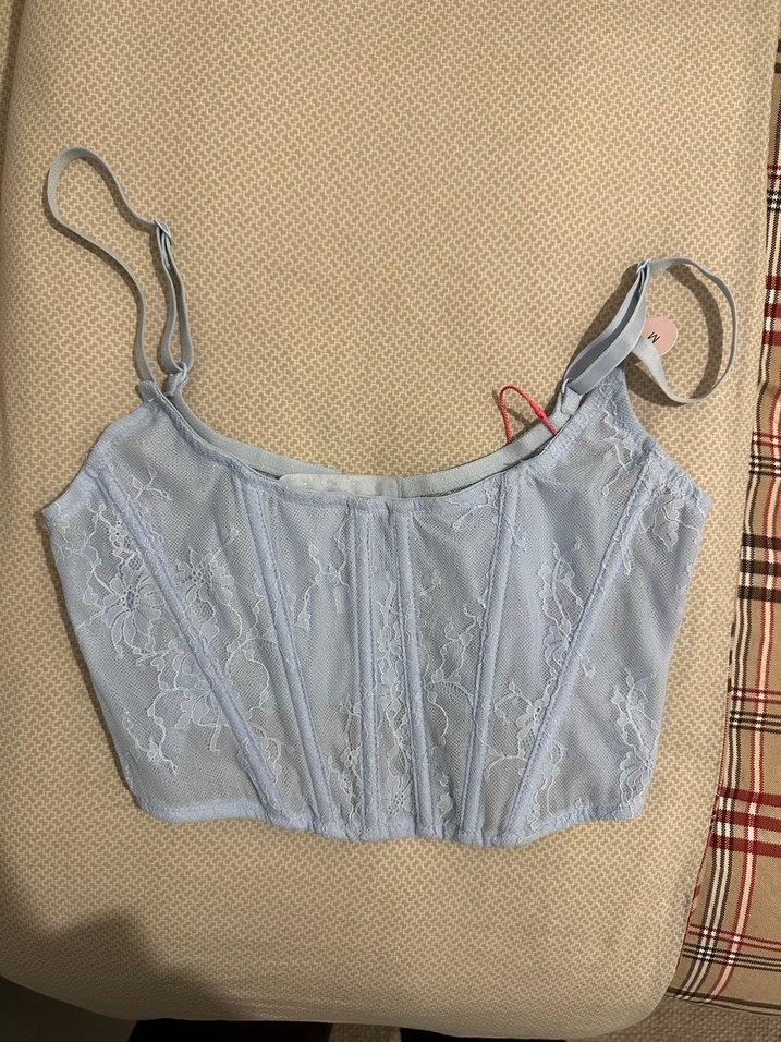 Dantel Detaylı Mavi Denim Straplez Büstiyer