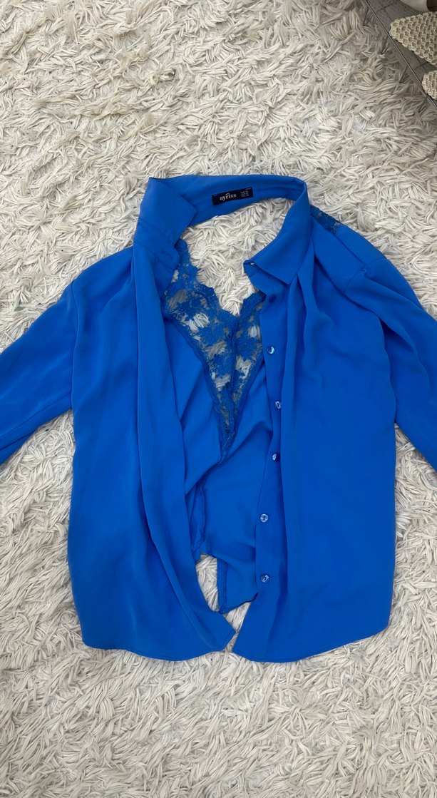 Dantel Detaylı Mavi Kadın Gömlek