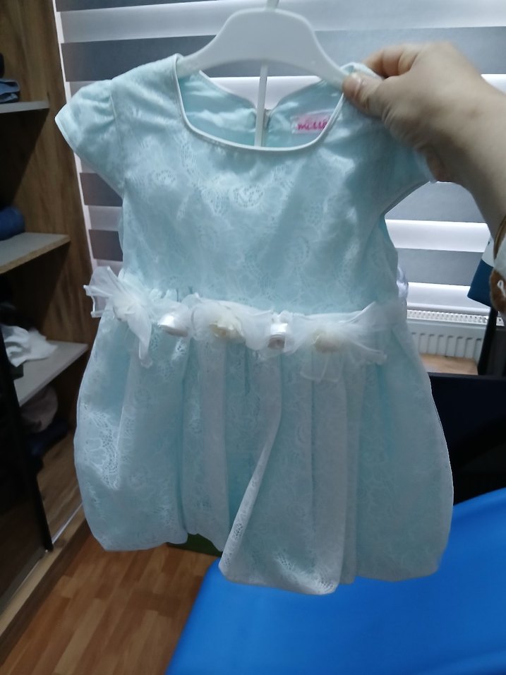 Dantel Detaylı Mavi Kız Çocuk Elbise