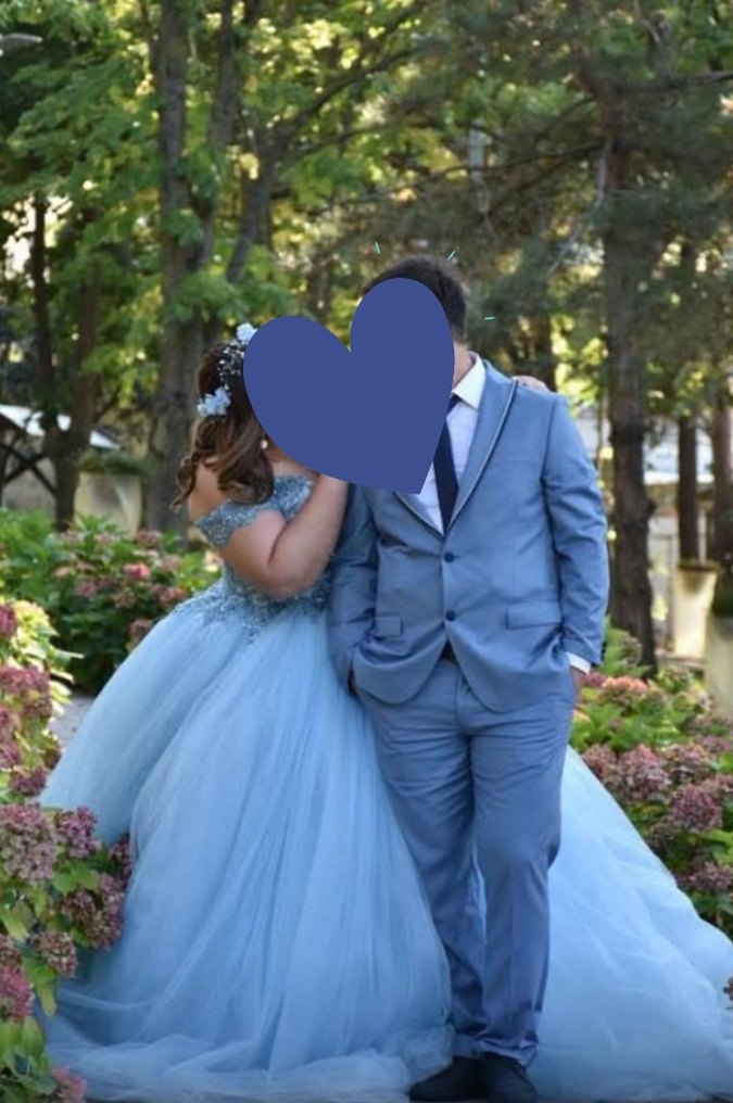 Dantel detaylı, kolsuz ve oturan kesim mavi uzun abiye elbise. Notch yaka ve pastel tonlarıyla klasik ve gotik avant-garde tarzı yansıtıyor.