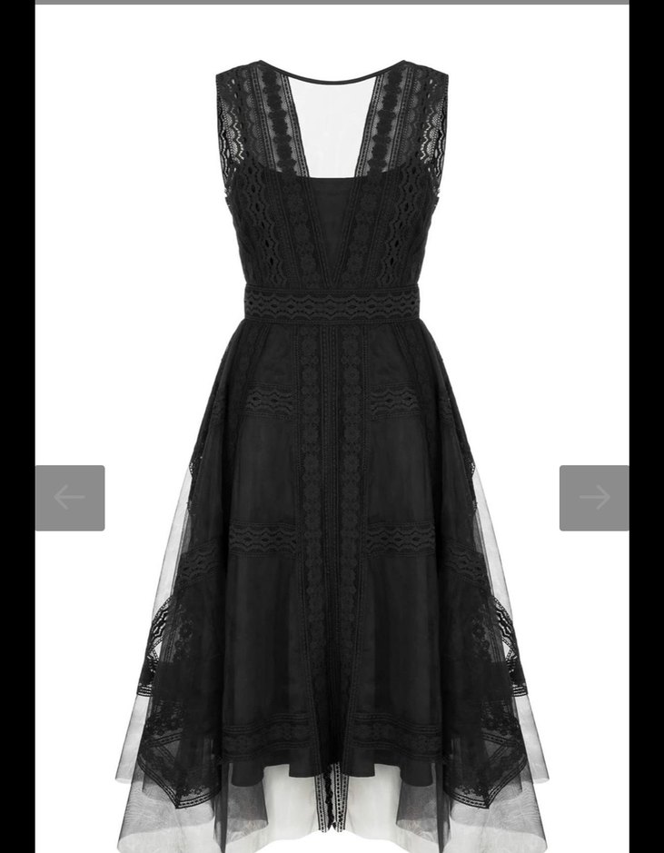 Bu siyah, dantel işlemeli ve V yaka uzun elbise, ince askılı ve klasik gotik şıklık sunar, düğünler için uygundur.