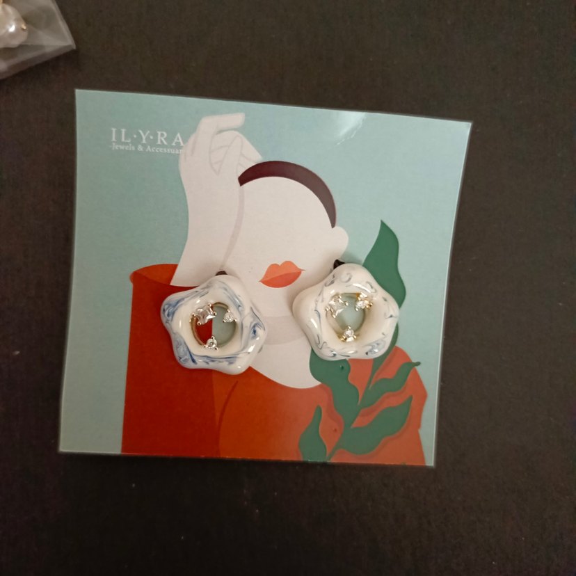 Kısa uzunlukta, dantel detaylı ve modern baskılı beyaz küpeler. Romantik bir buluşma için uygun. stokta 3 adet mevcuttur