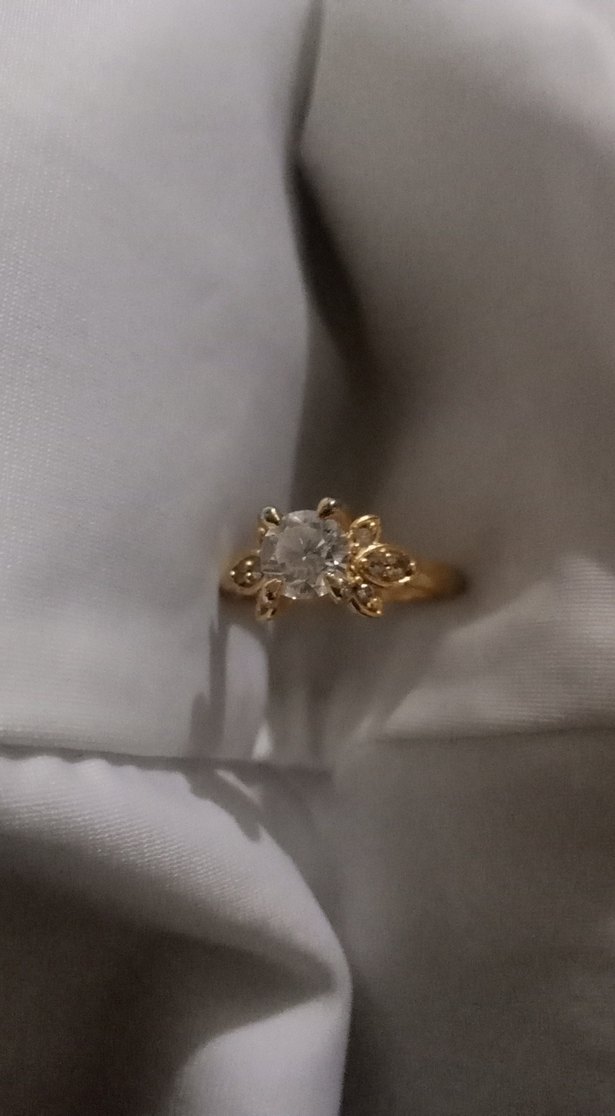 Bu altın yüzük, dantel detayları ve berrak taşlı modern klasik tasarımıyla düğünler için uygundur.