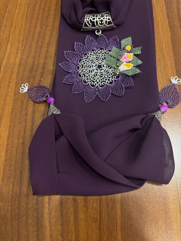 Dantel Detaylı Mor Bohem Kadın Atkı