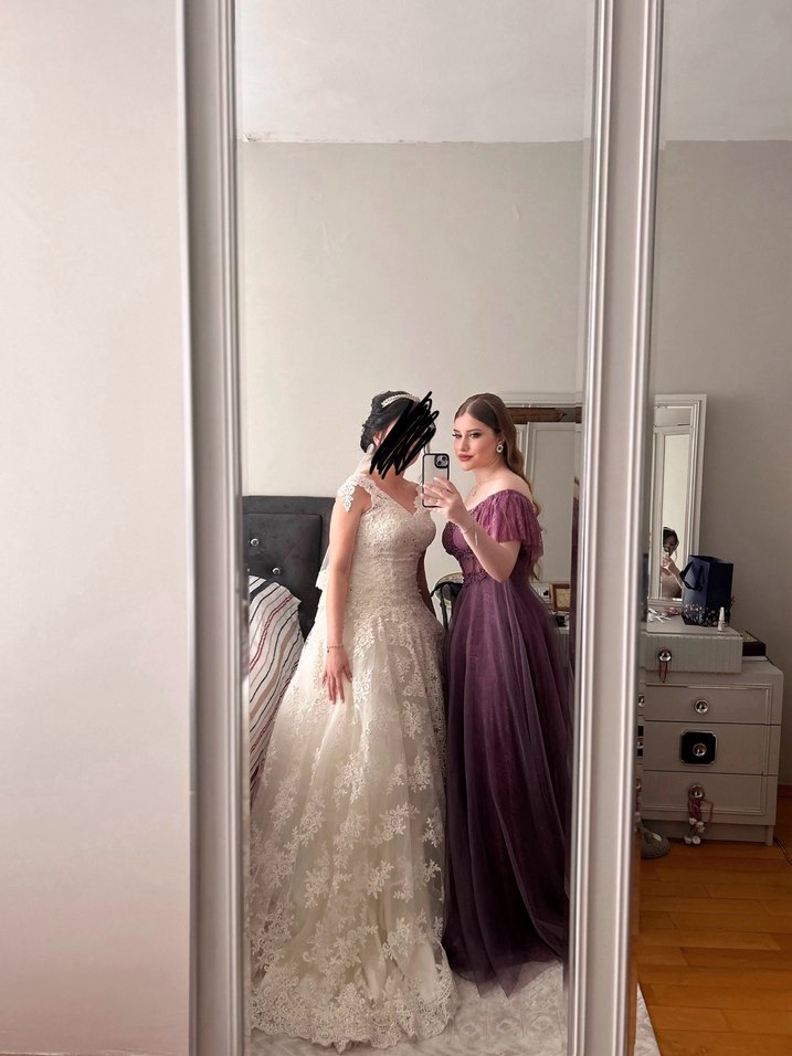Dantel Detaylı Mor Uzun Abiye Elbise