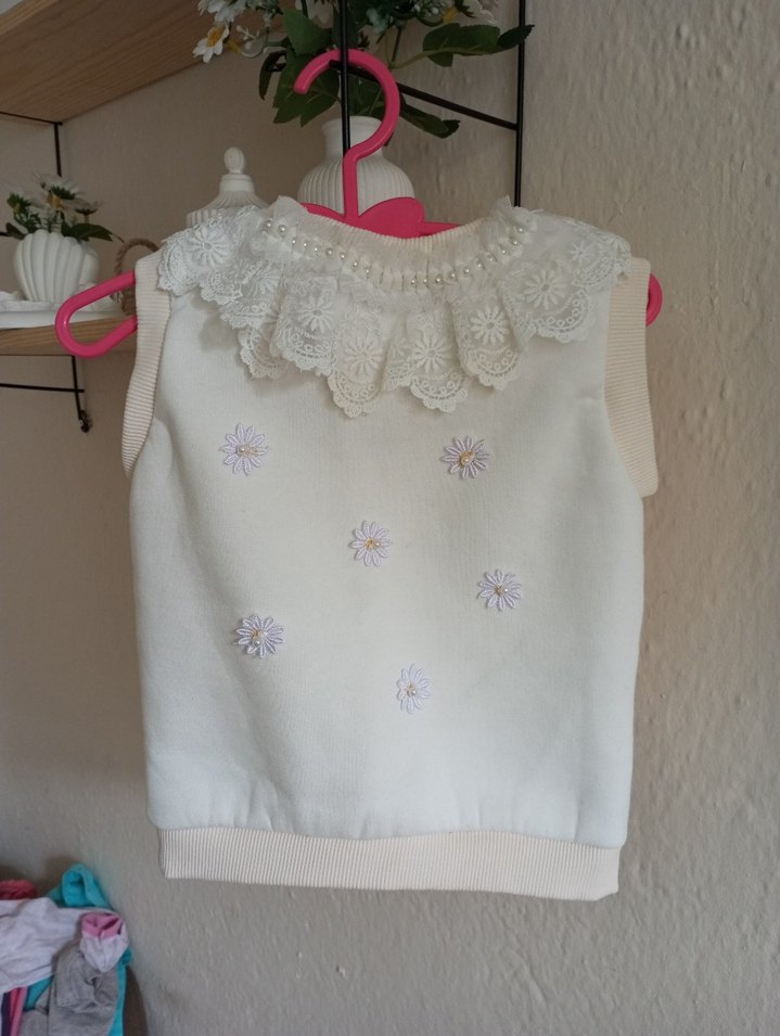 Dantel Detaylı Nakışlı Beyaz Kız Yeleği