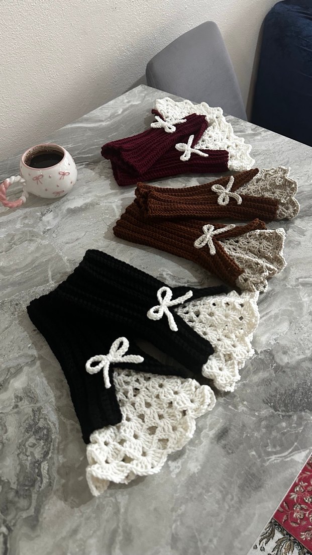 Koyu bordo renkli, dantel detaylı örgü bohem tarzda kadın eldivenleri, rahat ve nostaljik bir görünüm sunar.