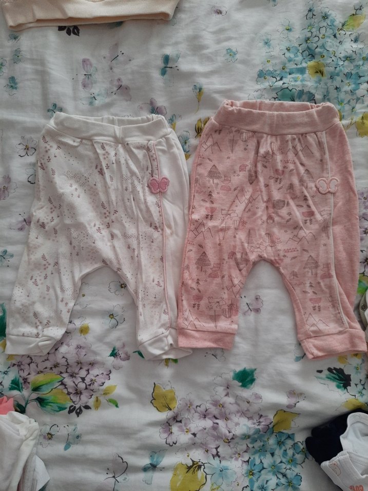 Yumuşak pamuktan, dantel detaylı, bol kesim pembe ve beyaz kız taytları. Rahat ve günlük kullanıma uygun stil. beyaz sol dizde sari leke mevcut 62cm