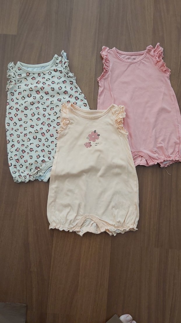 Dantel detaylı, pastel renklerde bebek kız tulumları. Omuz ve bacaklarda yumuşak kumaş ve nazik fırfırlar bulunur.