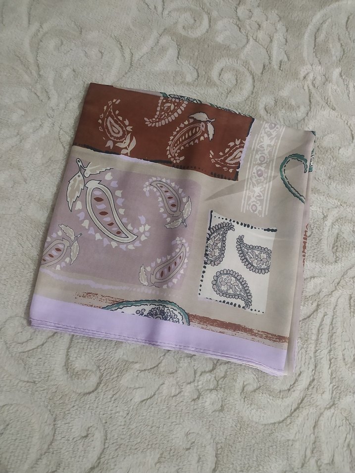 Kadınlar için pastel kahverengi tonlarda, dantel detaylı ve bohem paisley desenli yumuşak sentetik kumaş eşarp.Hiç kullanmadım sıfır.