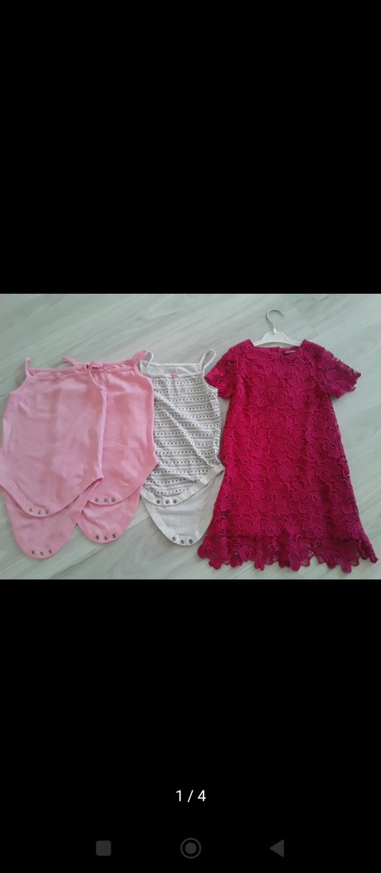 Dantel detaylı, pastel pembe tonlarda kolsuz bebek kız elbise seti. Düz ve desenli parçalar içerir, yumuşak kumaştan üretilmiştir.