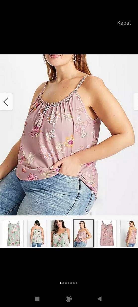 Pembe pastel tonlarda, bağcık detaylı askılı, dantel süslemeli, rahat kesim sentetik kumaştan bohem tarzda bluz. 46ile50beden arası uygundur