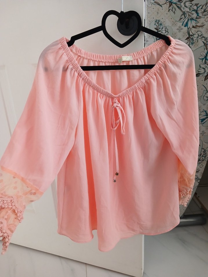 Pamuk kumaştan, V yakalı ve uzun kollu, dantel detaylı pembe bohem tarzda bol kesim bluz. Midi boyda, günlük kullanıma uygun. Daha önce birkaç defa kullanıldı bir sorunu yoktur.M-L beden uyar. #kadınbluz #kadıngömlek #kadıngiyim #zara #lcw #koton #defacto