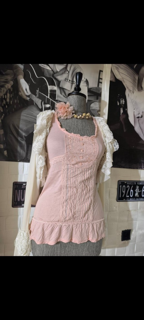 Dantel detaylı, işlemeli pembe bohem bluz. Straplez yakalı ve midi boyda, günlük kullanım için uygun.